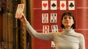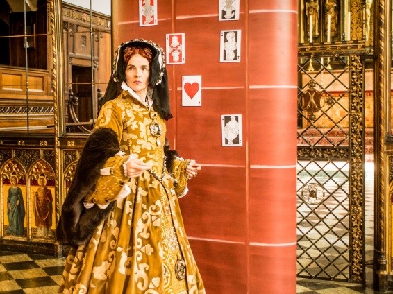Queen Mary 1 – Bloody Mary to her enemies – loves to play at dice and cards. Over a game in which the audience chooses the next card to be turned,